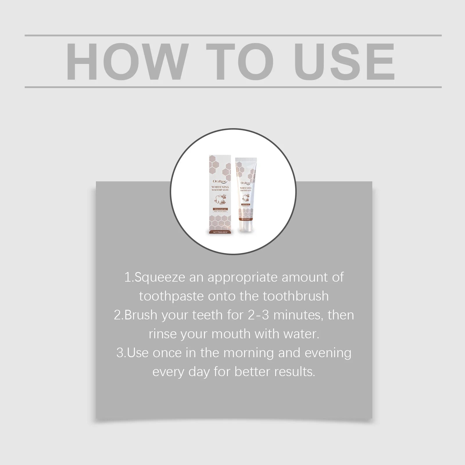2.Brush your teeth for 2-3 minutes, then rinse your mouth with water.